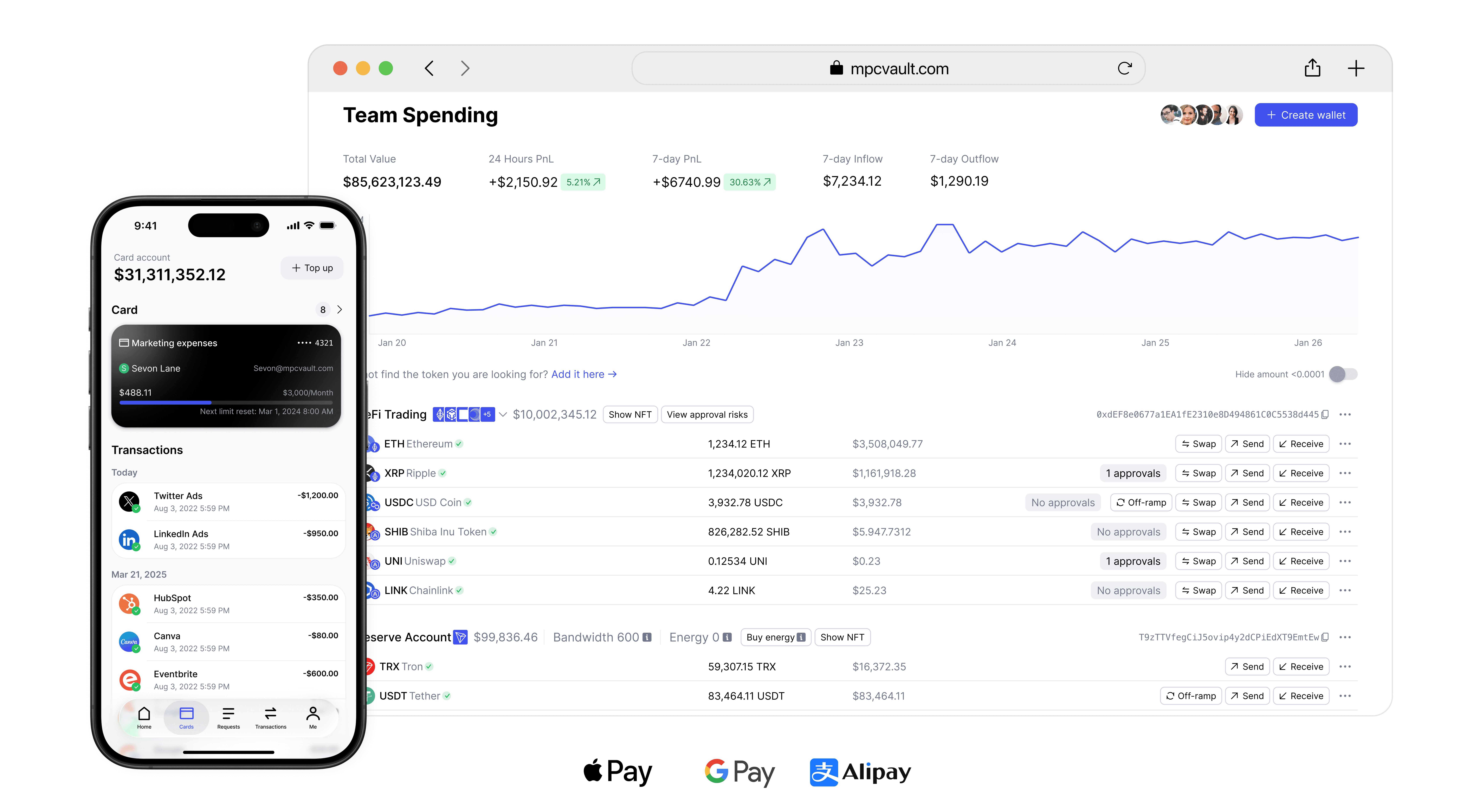 Meet MPCVault: institution-grade digital asset platform, from on-chain treasury management to off-chain payment rail, designed for institutions, teams, and individuals