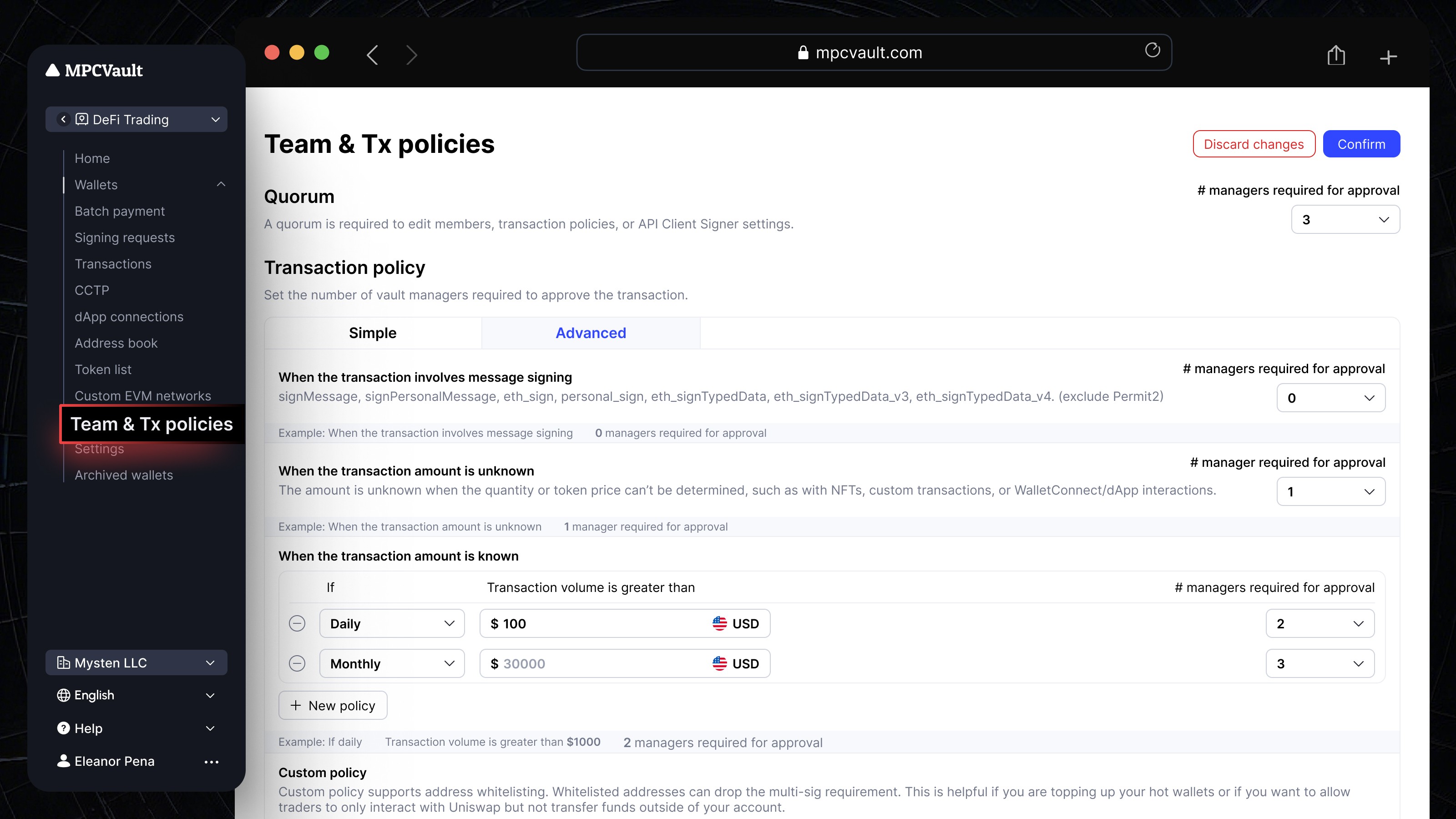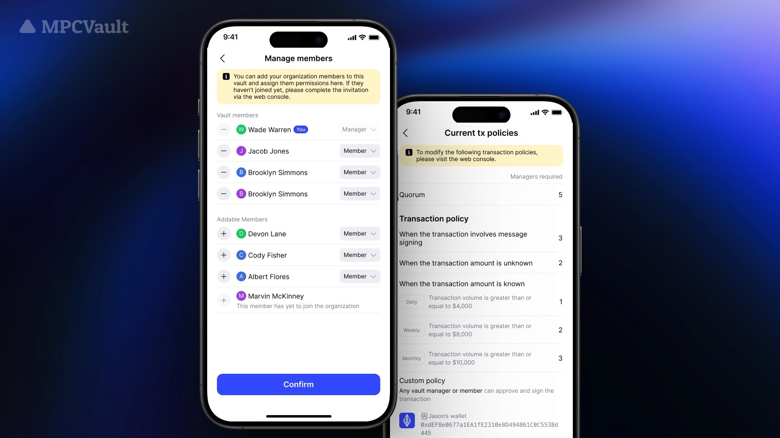 New on App — Vault Member Management & Transaction Policy View