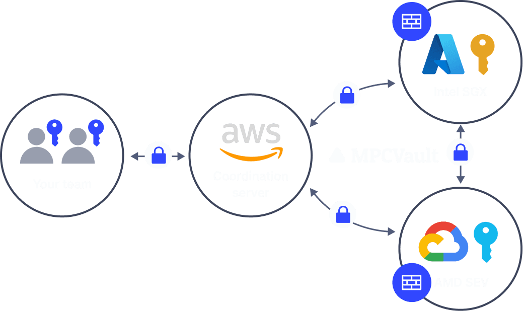 MPCVault is the only wallet solution that utilizes all three major cloud platforms – AWS, Azure, and Google Cloud. Our multi-cloud approach further reduces the potential for compromises or careless mistakes that could occur with a single cloud provider.